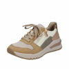 R2538-01 Remonte Sneakers i Sort til Dame. Super fin og let sneakers fra Remonte, i en fin sort farve med flotte guld detaljer. Modellen har udtagelige såler, samt snøre så den er nem at komme i/af. Remonte skoen er lavet af et elastisk materiale.