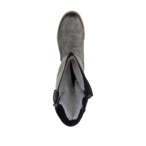 Rieker lang støvle til dame i grå. Stilfuld vinterstøvle i grå med klassisk design og moderne detaljer. Den funktionelle lynlås på indersiden gør det nemt at tage støvlen af og på, mens lynlåsen på ydersiden kan åbnes et kort stykke for at give ekstra rummelighed. Indvendigt sørger en varm foring for, at fødderne holdes behageligt lune, og den bløde indersål giver høj komfort gennem hele dagen. Rieker-Tex gør støvlen kraftigt vandafvisende, og den solide ydersål med mønster giver både stødabsorbering og øget skridsikkerhed.
