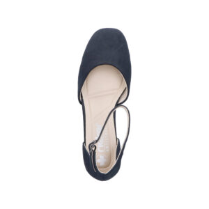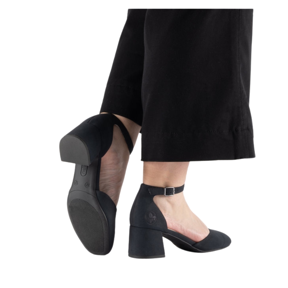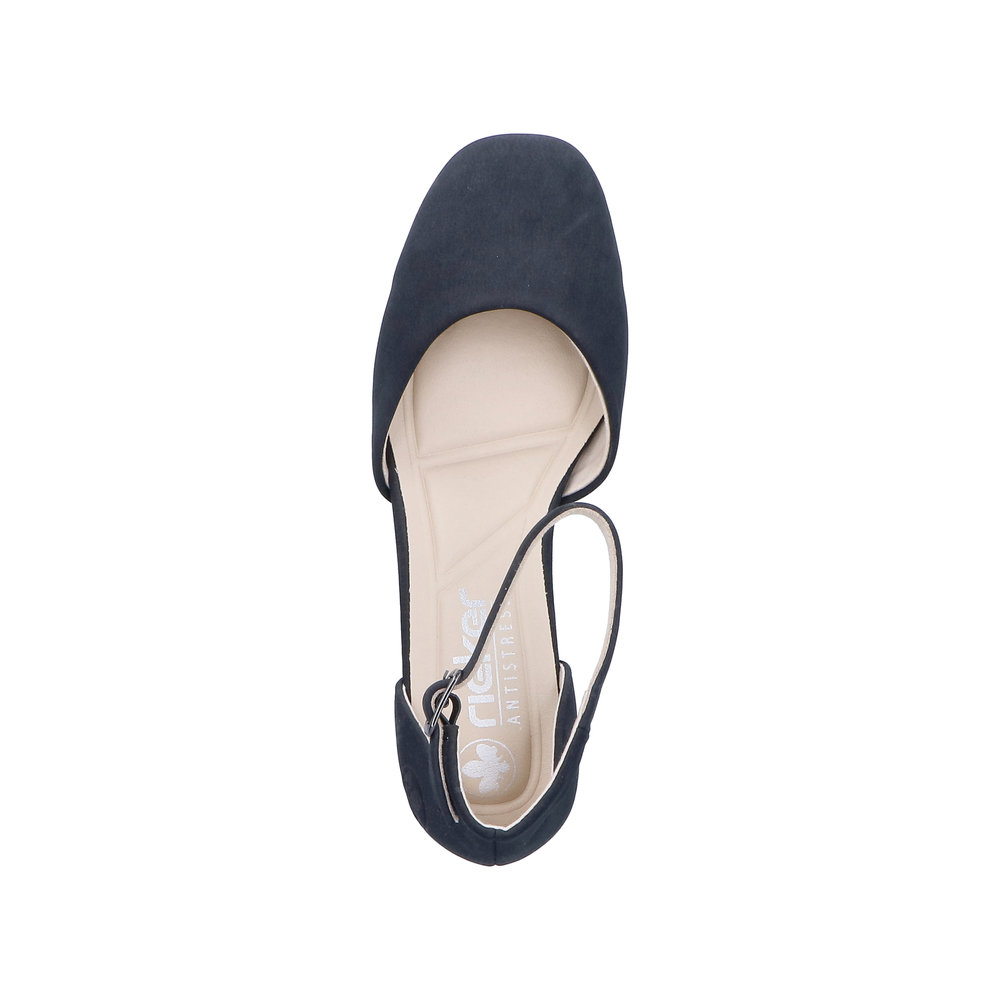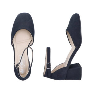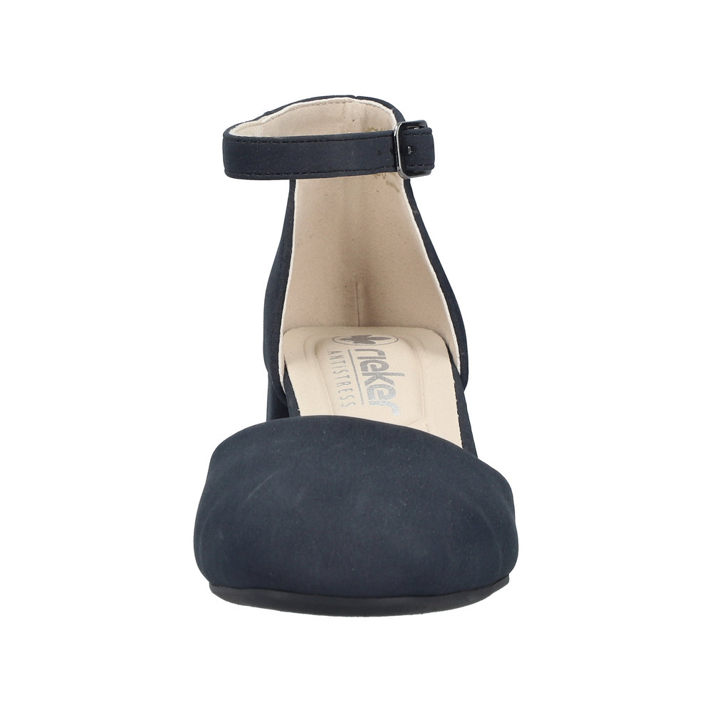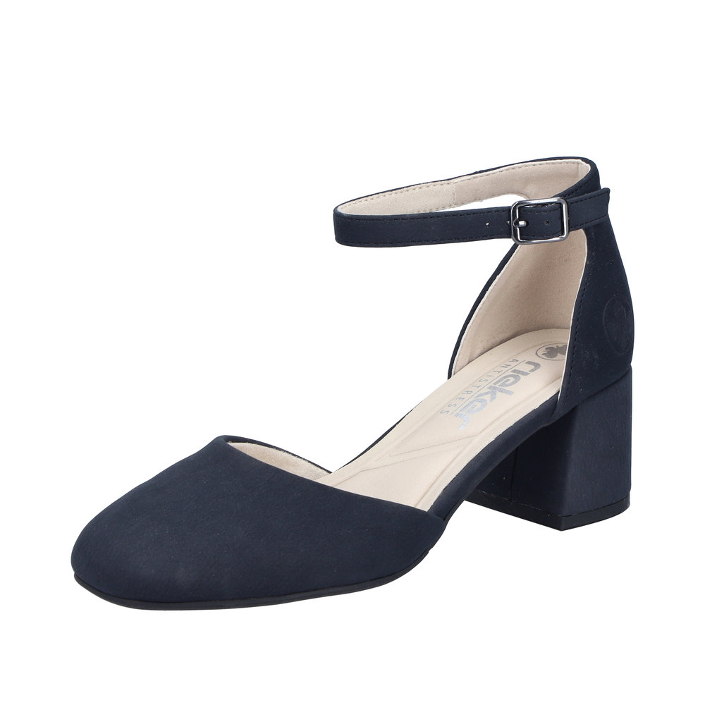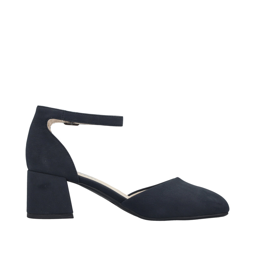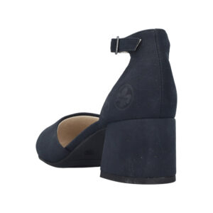 Rieker pumps til dame i mørkeblå. Disse stilfulde pumps er et komfortabelt valg når du ønsker et klassisk og moderne look. Skoen har et elegant spænde som både fungerer som dekorativ detalje og gør den nem at tage på. Indvendigt mødes du af en blød indersål der giver en behagelig fornemmelse hele dagen. Den stødabsorberende blokhæl på 5,5 cm giver et flot løft og bidrager til en stabil og komfortabel pasform.
