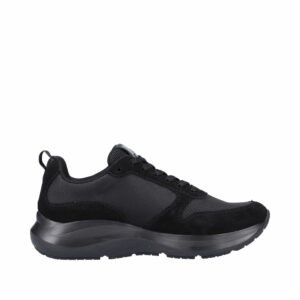 Rieker Revolution Sneakers i Sort til Dame. Lækker sneakers med et moderne look. Modellen har en lækker skind detalje samt flotte detaljer. Modellen har snøre foran og en god lækker stødabsorberende sål, som kan tages ud. Derudover har modellen Tex, hvilket gør den kraftig vandafvisende.