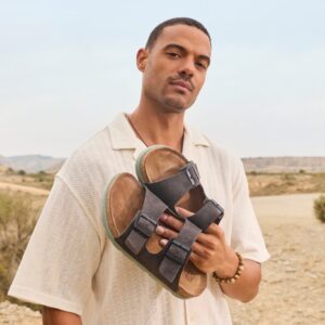 Rieker sandal til herre i grå. Klassisk sandal i sort nubuckskind med et enkelt og flot udtryk. Metalspænderne kan justeres, så du opnår en pasform, der føles behagelig. Den lette, grønne ydersål giver stødabsorbering og gør sandalen komfortabel at gå i. Sandalens Ekstra bredde H sikrer god rummelighed og gør den velegnet til lange dage.