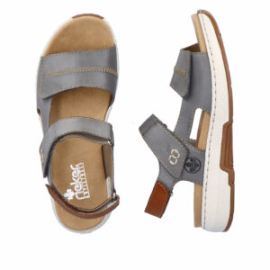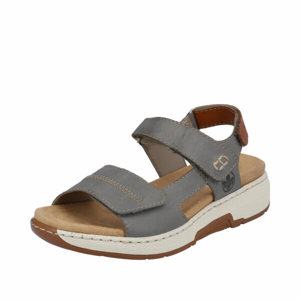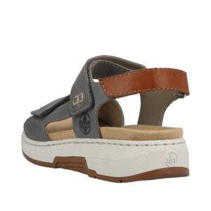 Rieker Sandal i Blå til Dame. Super lækker sandal fra Rieker med fine detaljer over hele sandalen. Modellen er dejligt fleksibel, samt der er tre velcro-lukninger, som giver den en god pasform samt gør den nem at komme i/af. Sandalen er fleksibel og stødabsorberende samt har en god solid bund.