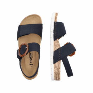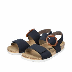 Rieker Sandal i Blå til Dame. Dejlig let og blød sandal fra Rieker med spændedetalje. Sandalen har et moderne look, samt en super god pasform. Sandalen har en stødabsorberende og fleksibel bund, som øger komforten. Sandalen har to velcro-lukninger, der gør det nemt at justere den til din fod samt komme i den.
