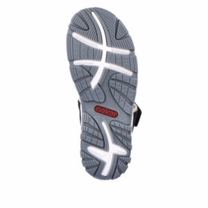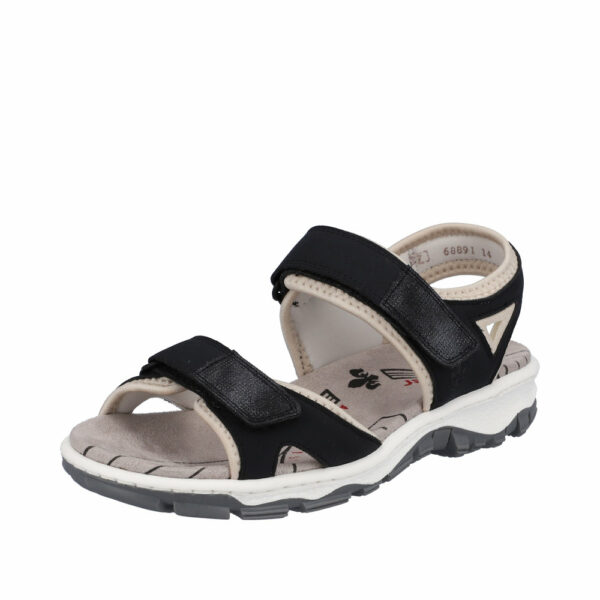 Rieker sandal i mørkeblå til dame. Smart og super fleksibel sandal fra Rieker med fine detaljer samt en god stødabsorberende og let bund, der sikrer god komfort og støtte for dine fødder. Modellen har to justerbare velcroremme, som gør den nem at komme i/af. Sandalen har en dejlig skridsikker bund, der har et godt greb i underlaget.