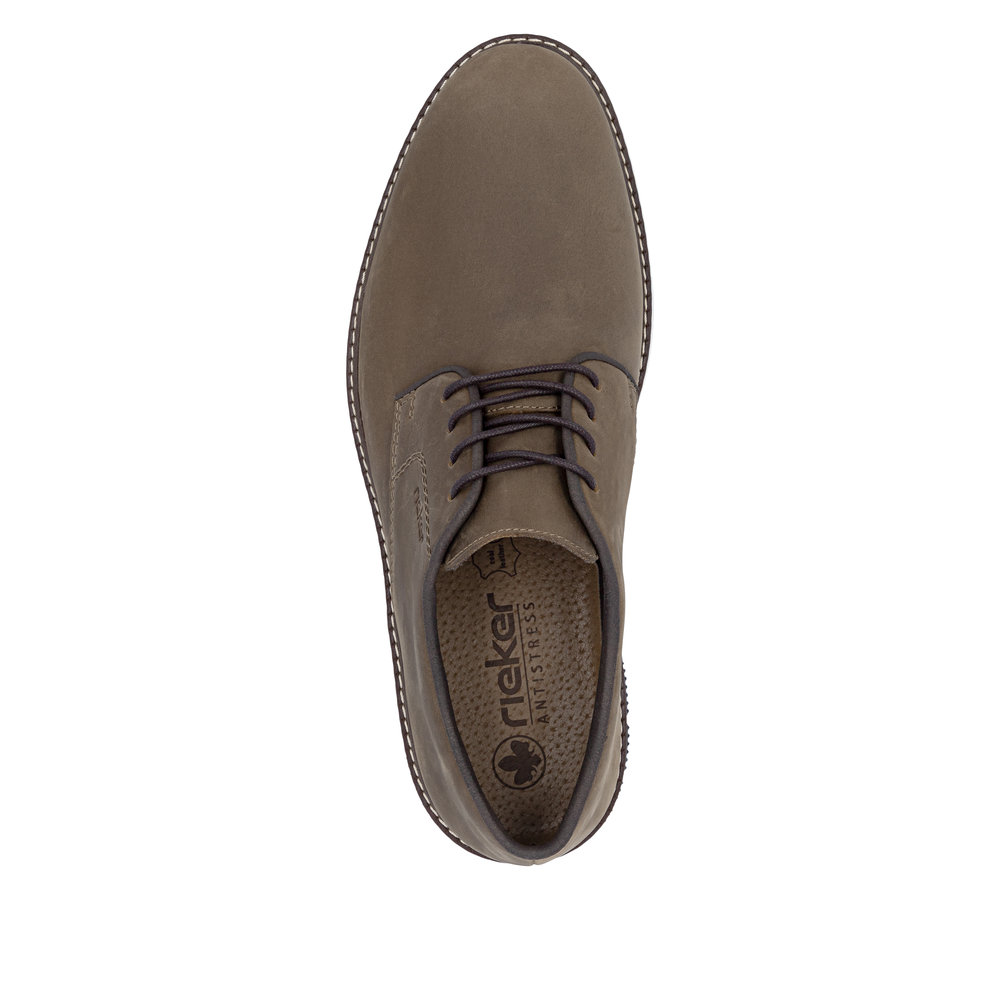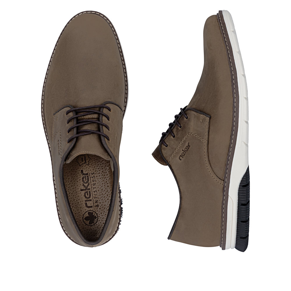 Rieker sko til herre i brun. Flotte brune sko med skindoverdel, som giver en behagelig pasform og er velegnet til daglig brug. Snørebåndene foran gør det let at justere skoen, så den sidder godt på foden. Indvendigt finder du en blød indersål, der sikrer høj komfort hele dagen. Rieker Antistress gør modellen let og fleksibel, mens ydersålen med mønster giver øget stødabsorbering og skridsikkerhed.