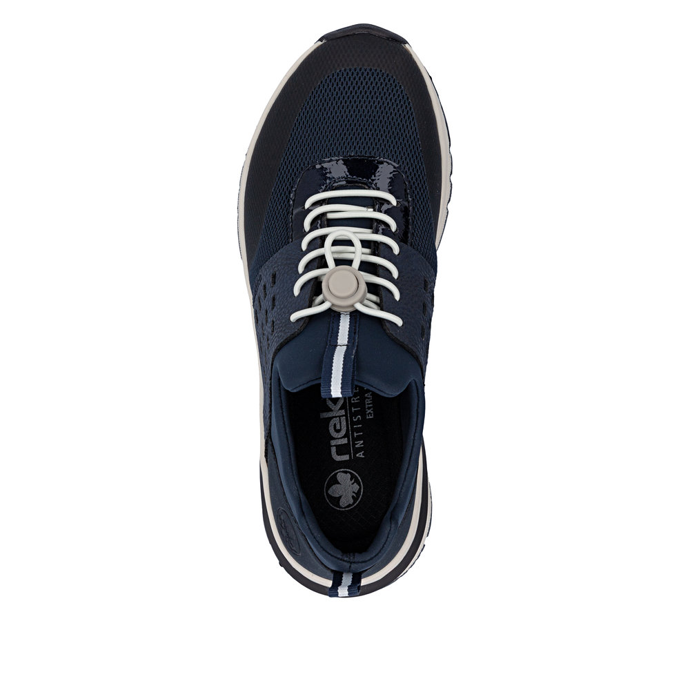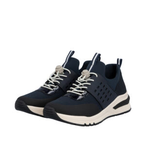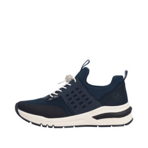 Rieker sneakers til dame i blå. Stilfuld blå sko med fokus på komfort og en behagelig pasform. Den elastiske lukning gør det let at tilpasse skoen efter foden og giver god fleksibilitet. Indvendigt finder du en blød udtagelig indersål og ekstra bredde H, som sikrer god plads og komfort hele dagen. Den mønstrede ydersål giver både øget stødabsorbering og skridsikkerhed.
