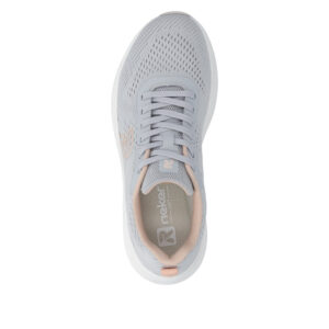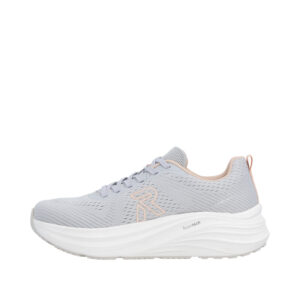 Rieker sneakers til dame i grå. Sporty og stilren sko, der passer perfekt til daglig brug. Snørebåndene foran giver mulighed for at tilpasse pasformen efter behov, så skoen føles behagelig hele dagen. Indvendigt er skoen udstyret med en blød udtagelig sål og ekstra bredde (G), som sikrer god komfort og plads til foden. Ydersålen måler 4,5 cm og er designet med mønster, der giver øget skridsikkerhed og støtte ved hvert skridt.