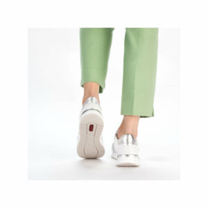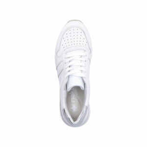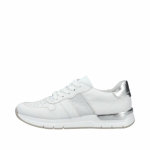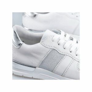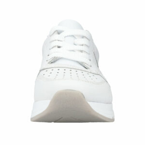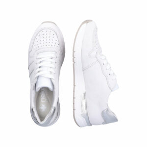 Rieker sneakers til dame i hvid. Disse fleksible ishvide Rieker sneakers til damer lavet af glat læder er perfekte til hverdagsbrug. Desuden sikrer snøringen en god pasform til foden. Sålen er skridsikker og giver altid godt greb og med stødabsorberende såler, aflaster du fødderne ved hvert skridt du tager. Flotte sølv detaljer på hælen på denne sneakers og med det bløde aftagelige indlæg er du sikret perfekt komfort.