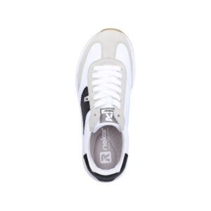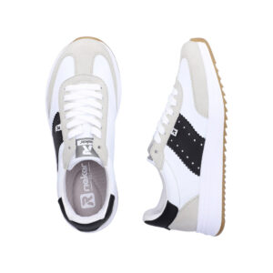 Rieker sneakers til dame i hvid. Stilfuld og komfortabel sko med moderne detaljer og snørebånd, der gør det muligt at tilpasse pasformen præcist. Indvendigt er skoen udstyret med en blød udtagelig indersål, som giver behagelig komfort dagen lang, mens ekstra bredde (H) sikrer god plads til foden. Ydersålen har et mønster, der giver øget støtte og skridsikkerhed.