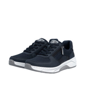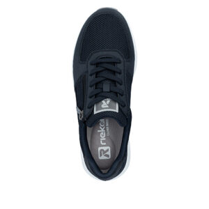 Rieker sneakers til dame i mørkeblå. Stilfulde sneakers der kombinerer et flot udtryk med praktiske løsninger til daglig brug. Kombinationen af snørebånd og funktionel lynlås gør det let både at justere pasformen og komme hurtigt i og af skoen. Skoen er udstyret med en blød og udtagelig sål, og ekstra bredde H som sikrer god rummelighed og komfort hele dagen. Ydersålen har et mønster der giver stødabsorbering og øget skridsikkerhed i hverdagen.