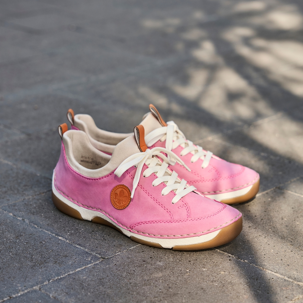 Rieker sneakers til dame i pink. Denne lette sneakers i en flot pink farve kombinerer et moderne look med god komfort. Snørebåndene foran giver mulighed for at tilpasse pasformen, så skoen føles behagelig hele dagen. Indvendigt er modellen udstyret med en blød skindsål, der giver optimal komfort. Rieker Antistress gør skoen let og fleksibel med god rummelighed, mens ydersålen med stødabsorbering giver en behagelig gang gennem hele dagen.