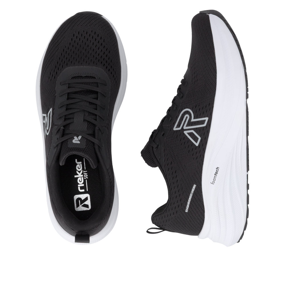 Rieker sneakers til dame i sort. Smarte sneakers til dame i sort med åndbart materiale og et enkelt design. Skoen har en Foamtech gummisål, der giver god støtte og stødabsorbering dagen igennem. Indvendigt er skoen udstyret med en udtagelig Rieker-Soft indersål, som giver ekstra komfort. Ydersålen er designet med mønster, der sikrer øget skridsikkerhed ved daglig brug.