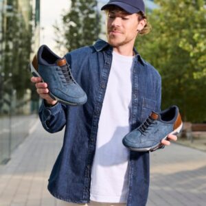 Rieker sneakers til herre i blå. Stilfulde sko i et moderne design, hvor komforten er i fokus hele dagen. Elastikken foran gør det let at komme i og af skoen. Indvendigt mødes du af en blød udtagelig sål, der sikrer god komfort, og ekstra bredde (H) giver god plads til foden. Den mønstrede ydersål giver øget stødabsorbering og skridsikkerhed, så du får en stabil gang.