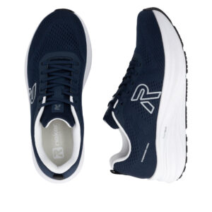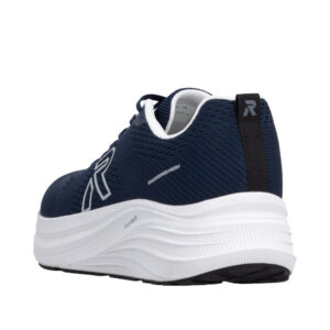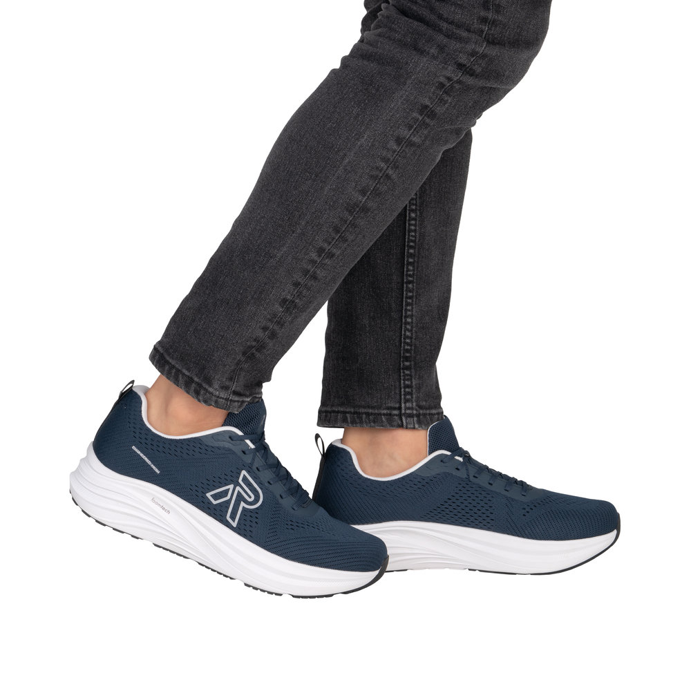 Rieker sneakers til herre i blå. Disse moderne sko kombinerer et sporty look med høj komfort til hverdagen. Skoen har snørebånd, der gør det muligt at tilpasse pasformen præcist til foden. Indvendigt mødes du af en blød og udtagelig indersål, mens ekstra bredde (H) giver god rummelighed og komfort dagen lang. Ydersålen giver øget støtte og skridsikkerhed, så hvert skridt føles behageligt.
