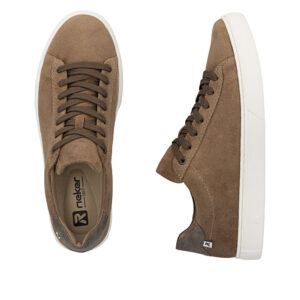 Rieker sneakers til herre i brun. Stilfulde sneakers i brun med ruskindsoverdel og fokus på komfort. Skoen er udstyret med snørebånd foran, så pasformen nemt kan tilpasses, og skoen er let at tage af og på. Indvendigt mødes du af en blød og udtagelig Rieker-Soft sål med ekstra bredde G, der giver god rummelighed. Ydersålen er solid og stødabsorberende samt har et mønster, som giver øget skridsikkerhed i hverdagen.