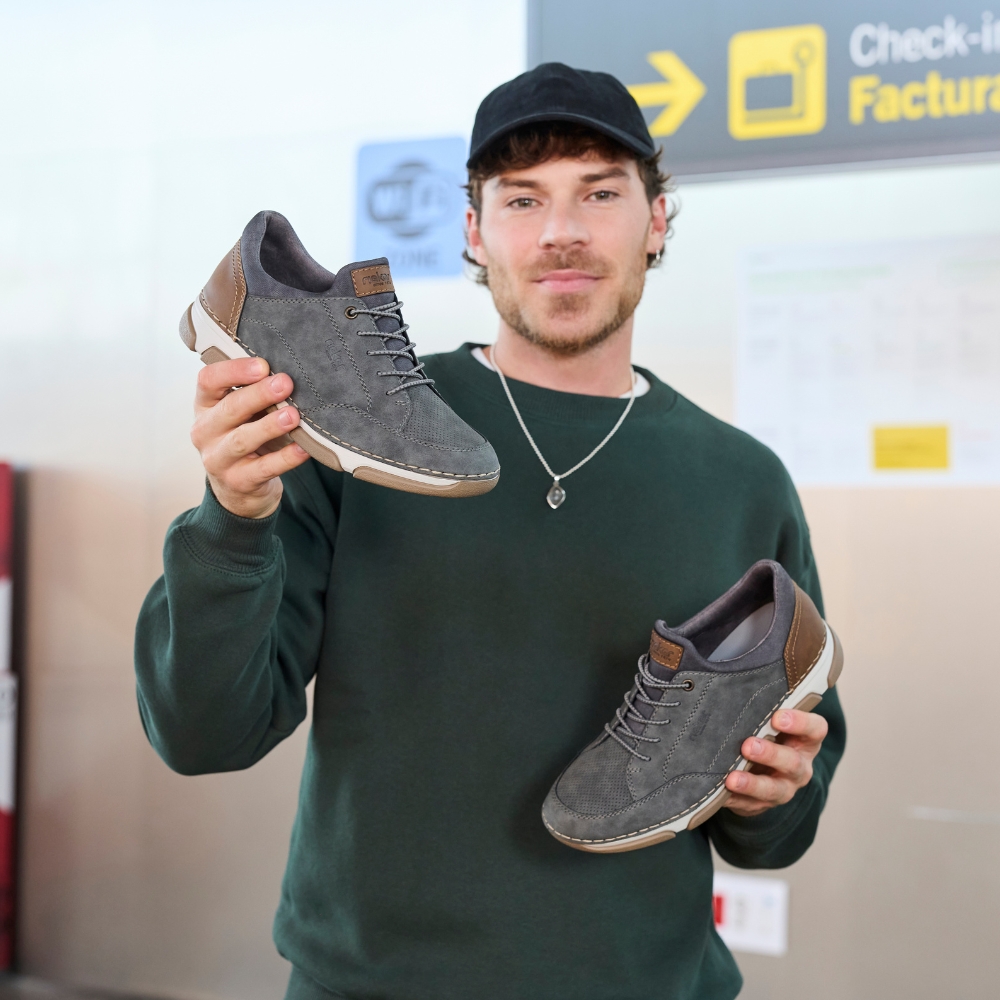Rieker sneakers til herre i grå. Disse moderne sneakers i grå er lette og komfortable med elastik over vristen, der sikrer en fleksibel pasform. Indvendigt finder du en blød udtagelig indersål, som giver en behagelig fornemmelse, mens ekstra bredde (H) giver god plads til foden. Den mønstrede ydersål giver øget støtte og skridsikkerhed, så skoen er behagelig hele dagen.