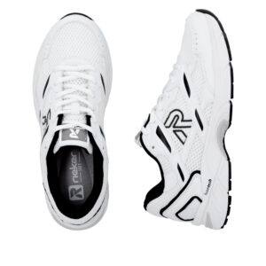 Rieker sneakers til herre i hvid. Disse Rieker sneakers er et godt valg til dig, der ønsker komfort og et sporty udtryk i hverdagen. Skoen har snørebånd, som giver mulighed for at tilpasse pasformen, så den passer perfekt til foden. Indvendigt mødes du af en blød og udtagelig indersål, der giver behagelig komfort hele dagen, mens ekstra bredde (H) sørger for god rummelighed. Ydersålen med mønster giver øget støtte og skridsikkerhed i hverdagen.