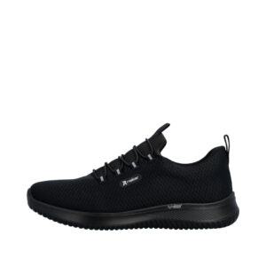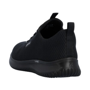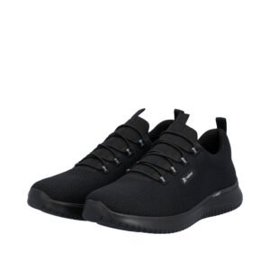Rieker sneakers til herre i sort. Stilrene og komfortable sneakers til herre, der passer perfekt til en aktiv hverdag. Skoen har elastik, som gør den nem at komme i og af og giver en afslappet pasform. Indvendigt mødes du af en blød indersål, der giver behagelig komfort hele dagen, mens ekstra bredde (G) giver god rummelighed til foden. Den funktionelle ydersål giver øget stødabsorbering og skridsikkerhed i hverdagen.