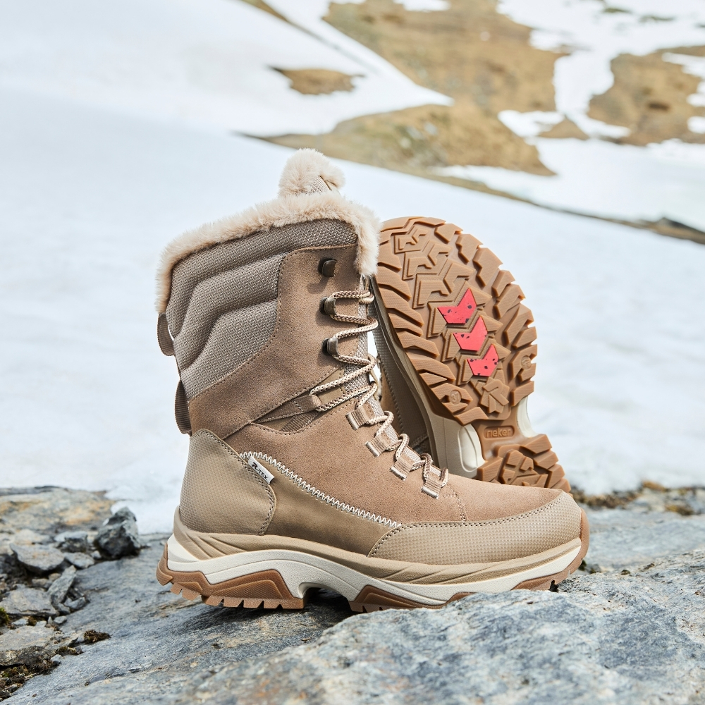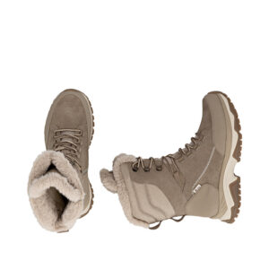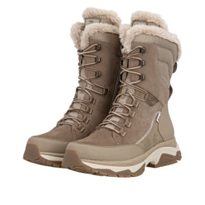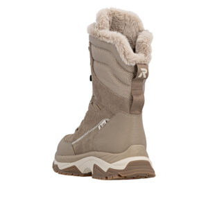 Rieker støvle til dame i beige. En flot vinterstøvle i beige med smarte detaljer, der understreger det moderne design. Overdelen er lavet i ruskind og kombinerer snørebånd med en funktionel lynlås, der både giver en god pasform og gør støvlen let at tage på. Indvendigt finder du en blød og udtagelig termosål samt en varm uldforing, som giver komfort hele dagen. Takket være Rieker-Tex er støvlen kraftigt vandafvisende, og den robuste Fiber-Grip ydersål med stødabsorbering og mønster giver øget støtte.