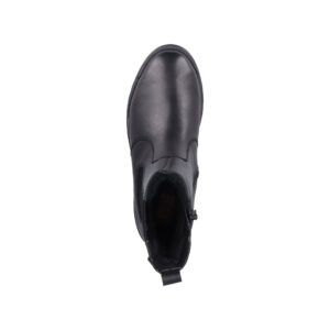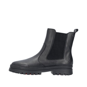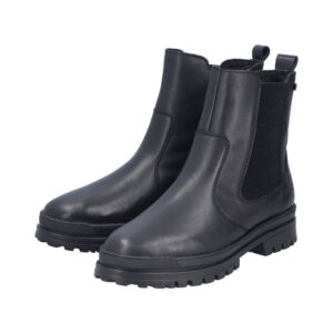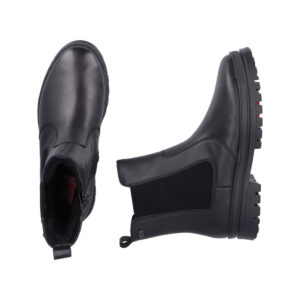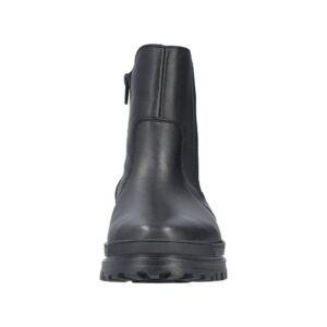 Rieker støvle til dame i sort. Denne vinterstøvle forener praktisk funktion og stilfuldt design. Modellen har elastik i siden og en funktionel lynlås, der gør det let at tage støvlen på og af. Indvendigt sørger en varm foring og en blød sål for høj komfort gennem dagen. Støvlens integrerede anti-slip system med foldbare pigge forbedrer skridsikkerheden og giver stabilitet uanset underlag. Takket være Rieker-Tex er støvlen kraftigt vandafvisende, og den mønstrede ydersål giver øget stødabsorbering.