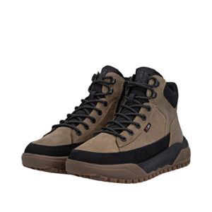 Rieker støvle til herre i brun. En smart og komfortabel støvle, der er skabt til hverdagen. Støvlen har både snørebånd og lynlås, så den er nem at tage på og tilpasse efter behov. Indvendigt er der en blød udtagelig sål og en varm foring, der giver god komfort dagen lang, mens ekstra bredde (G) giver mere plads. Rieker-Tex gør støvlen kraftigt vandafvisende, og den mønstrede ydersål giver øget stødabsorbering og skridsikkerhed.
