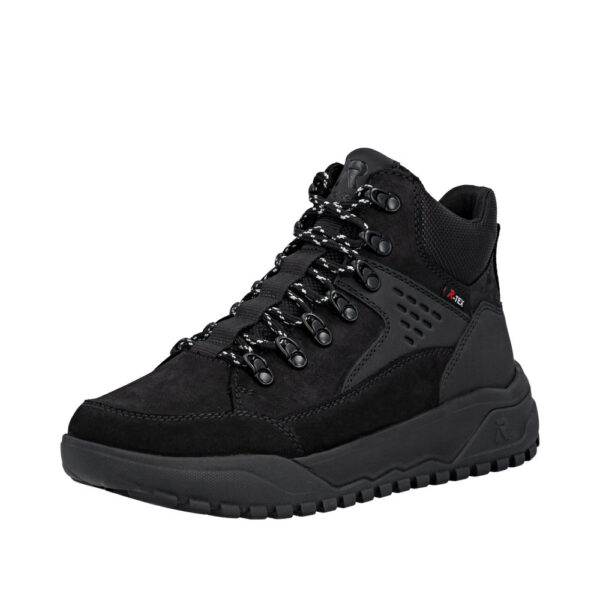 Rieker støvle til herre i sort. En moderne støvle, hvor komfort og funktionalitet går hånd i hånd. Snørebåndene giver mulighed for at justere pasformen, mens den funktionelle lynlås gør støvlen nem at tage på. Indvendigt sørger en blød Rieker-soft sål og en varm foring for høj komfort, og ekstra bredde (G) giver en rummelig pasform. Takket være Rieker-Tex er støvlen kraftigt vandafvisende, og den mønstrede ydersål giver øget stødabsorbering og skridsikkerhed.